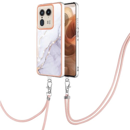 Funda para Motorola Edge 50 Ultra con Imd Doble Cara y Galvanoplastia Mármol con Cordón (Blanco)