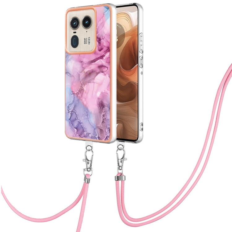 Funda para Teléfono Motorola Edge 50 Ultra con Imd Doble Cara y Galvanoplastia de Mármol con Cordón (Rosa)
