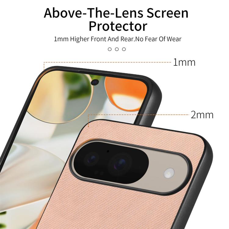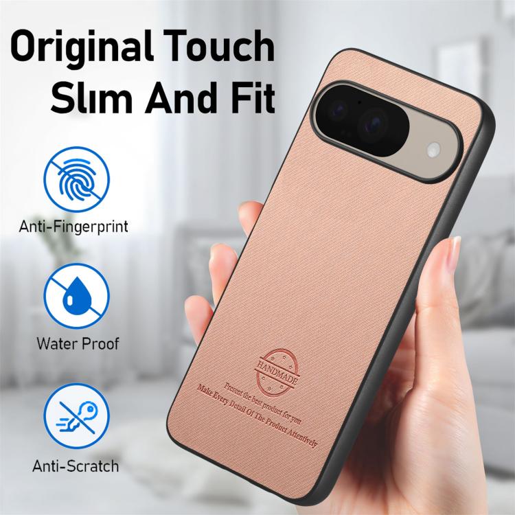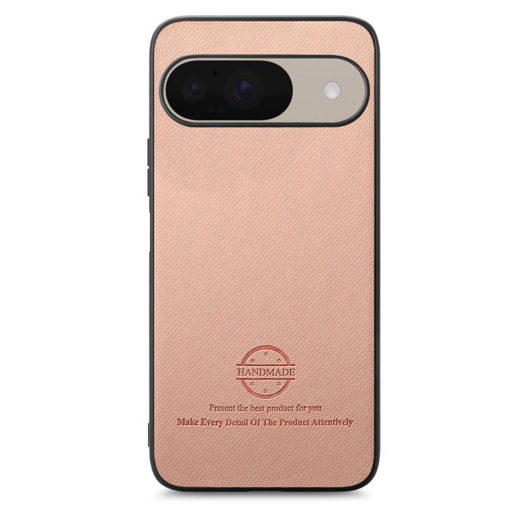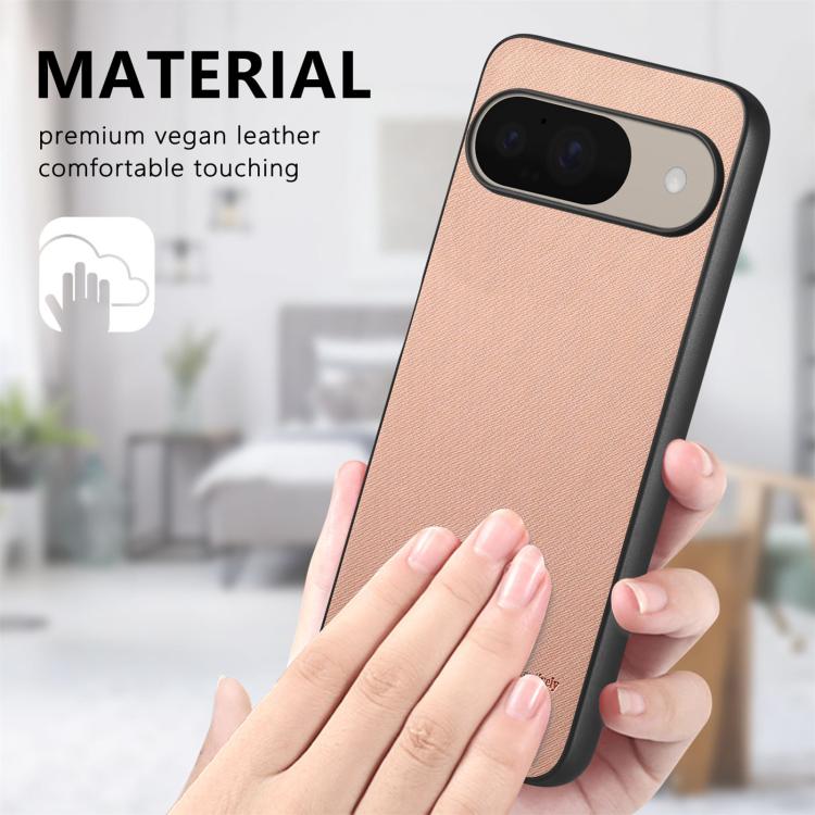 Funda para Teléfono Google Pixel 9/9 Pro con Parte Trasera de Piel y Tejido de Sarga (Rosa)