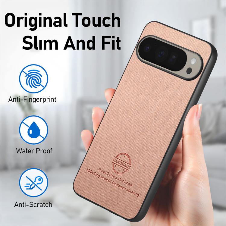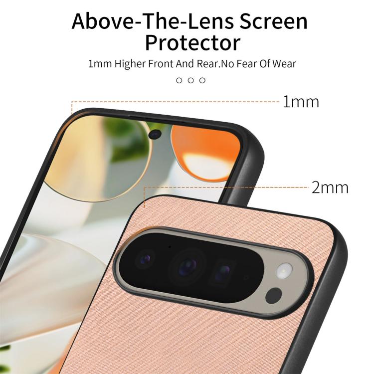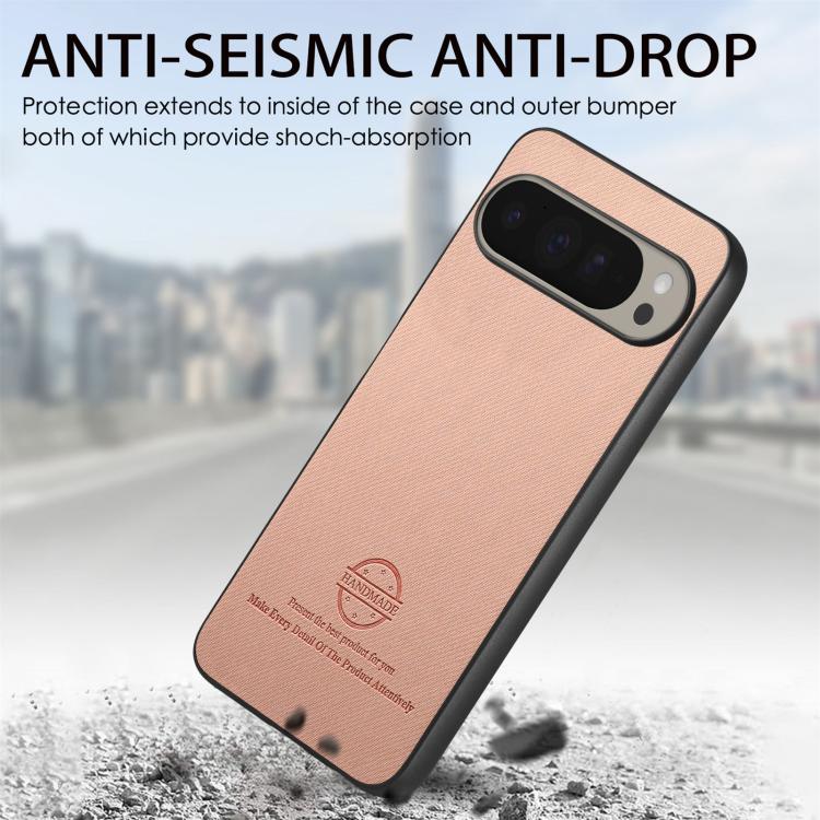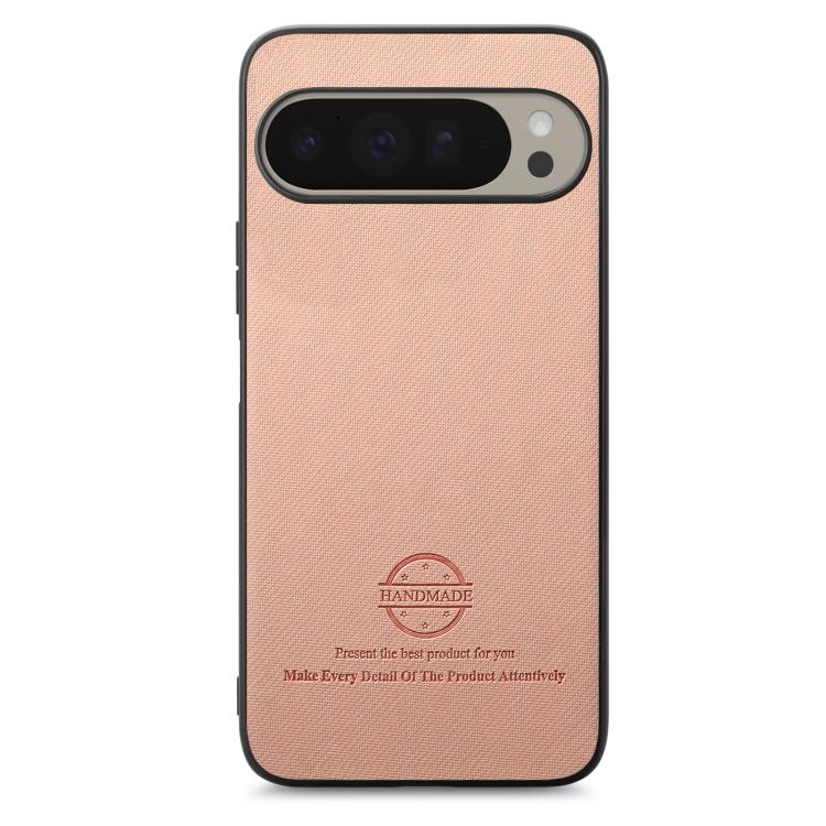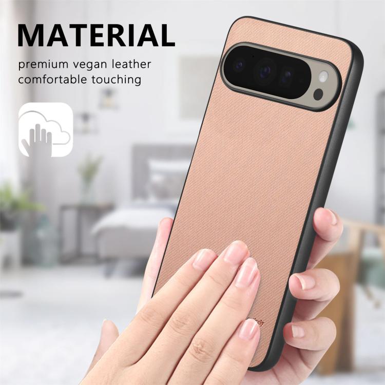 Funda para Teléfono Google Pixel 9 Pro XL con Parte Trasera de Piel y Tejido de Sarga (Rosa)