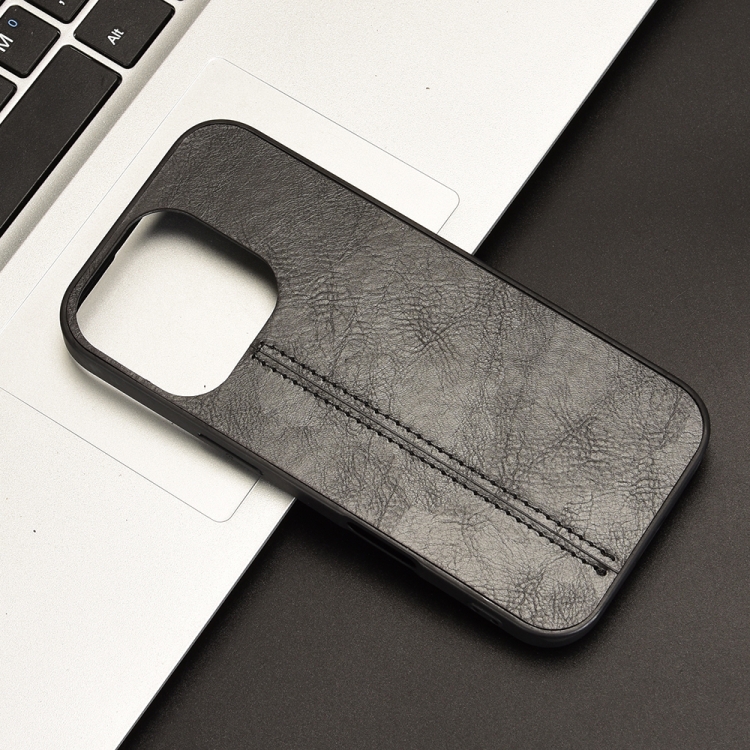 Funda para Teléfono iPhone 16 Pro Max con Patrón de Vaca y Tarjeta de Costura (Negra)