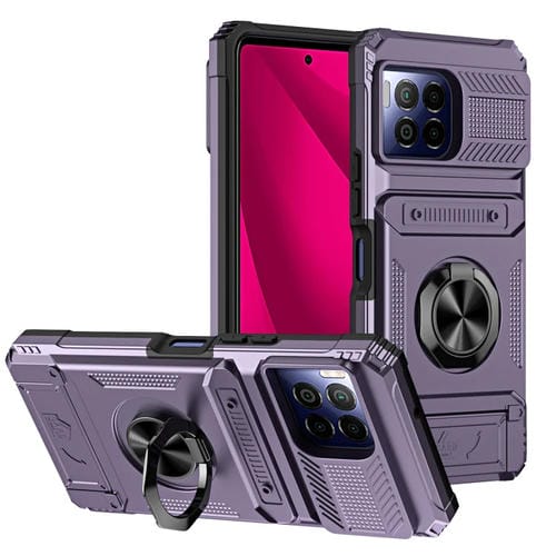 Funda para Teléfono T-Mobile Revvl 7 Pro Soporte Anillo Metal TPU Híbrido (Morado)