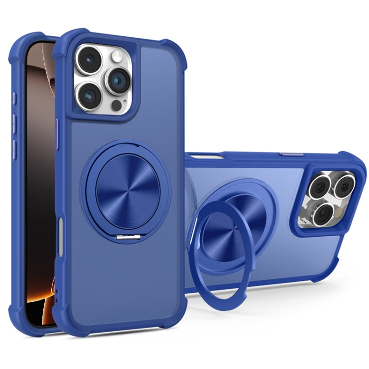 Funda para Teléfono iPhone 16 Pro Magsafe Soporte Giratorio 360 Textura Cd (Azul)