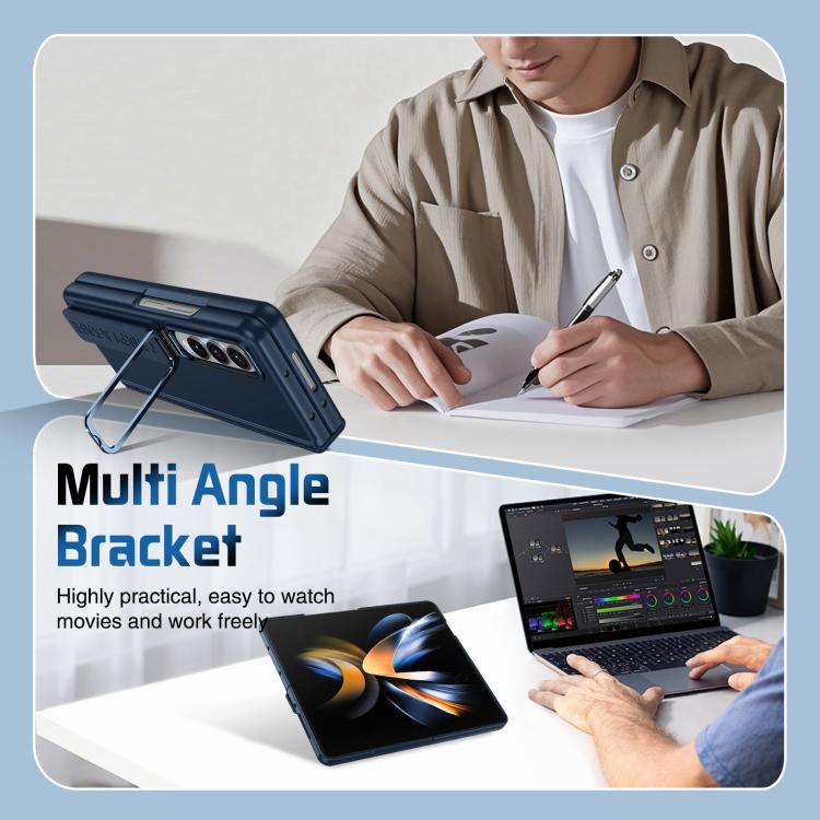Funda para teléfono con soporte para lente integrada y correa para Samsung Galaxy Z Fold4 (azul oscuro)