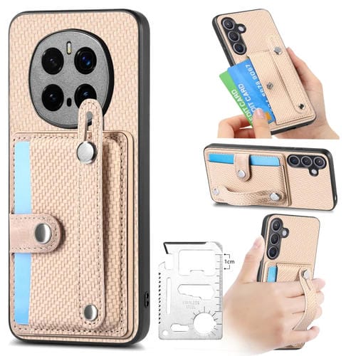 Funda para Teléfono Honor Magic7 Pro con Soporte, Pulsera, Tarjetero y Navaja (Caqui)