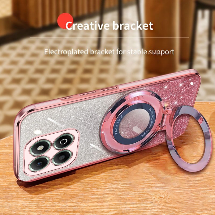 Funda para Teléfono Honor X6B TPU con Soporte Redondo y Purpurina Degradada (Negro)