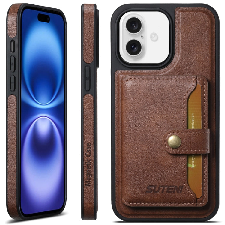Funda para Teléfono Suteni M1 Oil Wax con Tarjetero Horizontal Desmontable Magsafe para iPhone 16 (Marrón)