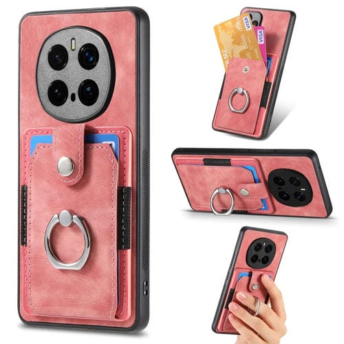 Funda para Teléfono Honor Magic7 Pro con Tarjetero y Anillo Tacto de Piel (Rosa)