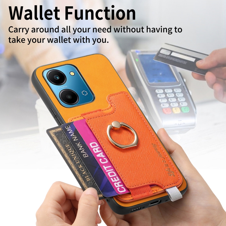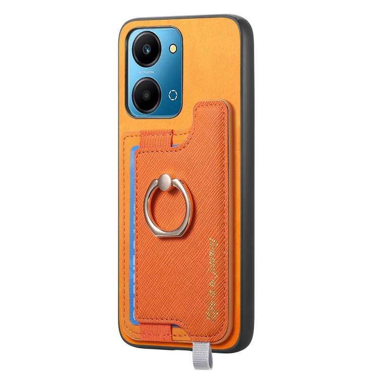 Funda para Teléfono Honor 100 Pro con Tarjetero Anillo Cuero Retro Magsafe (Amarillo)