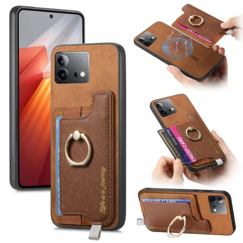 Funda para Teléfono con TaRJetero y Anillo de Cuero con Diseño Retro Magsafe para Vivo Iqoo Neo8/Neo8 Pro (Marrón)