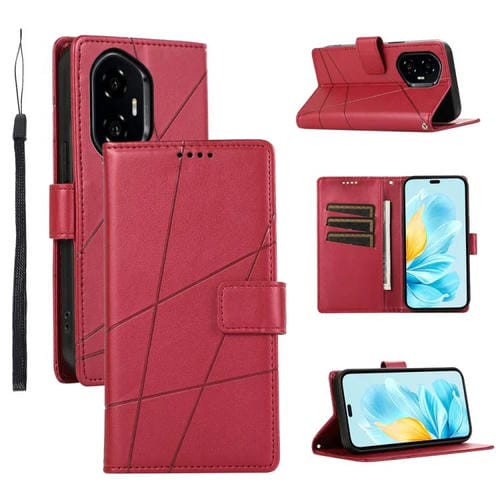 Funda para Teléfono Honor 300 Pro/300 Ultra Cuero Genuino PU Líneas en Relieve (Rojo)
