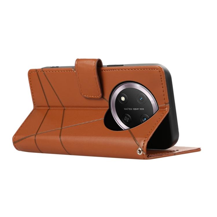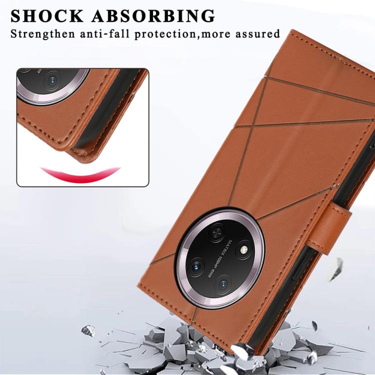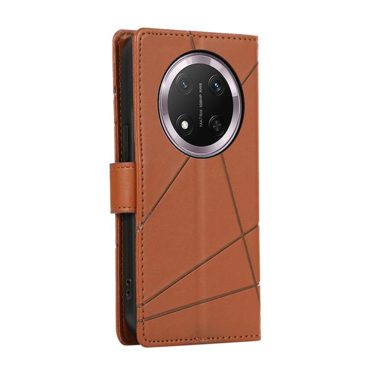Funda para Teléfono Honor X9C Global Magic7 Lite Textura Cuero Genuino PU Líneas En Relieve (Marrón)