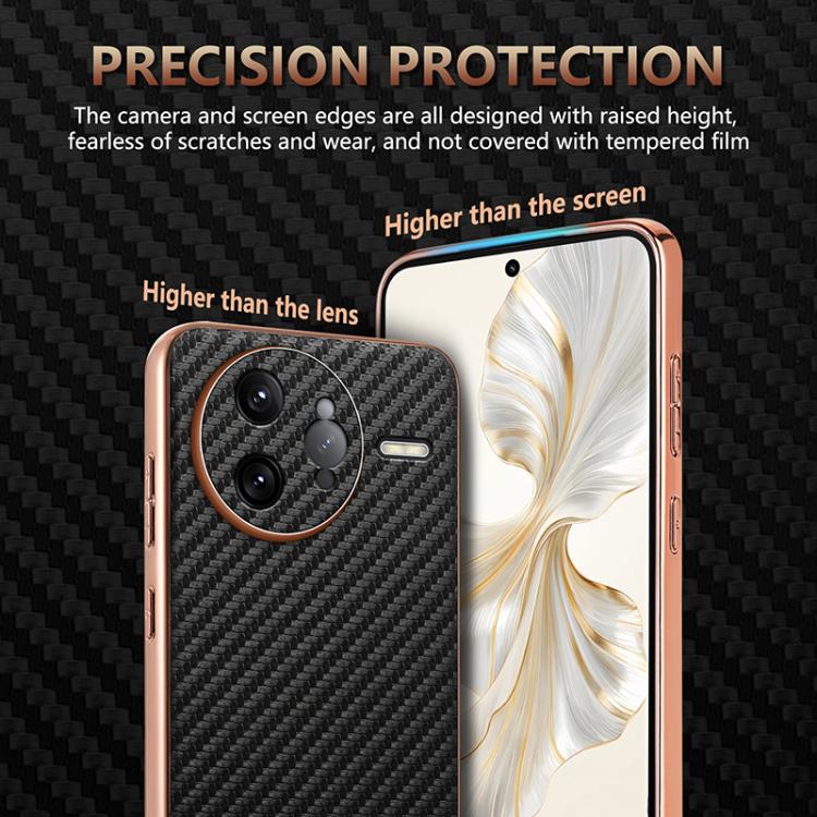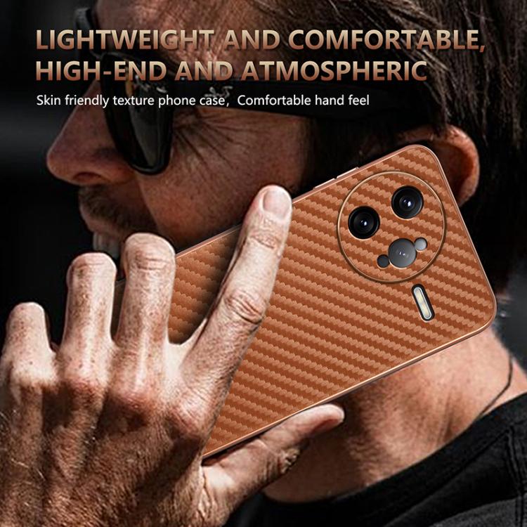 Funda para Teléfono con Textura de Fibra de Carbono con Borde Galvanizado Azns para Redmi K80 Pro (Marrón)