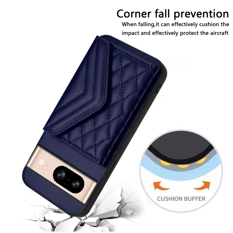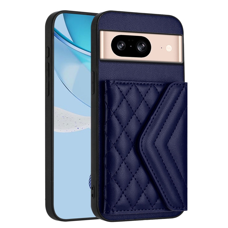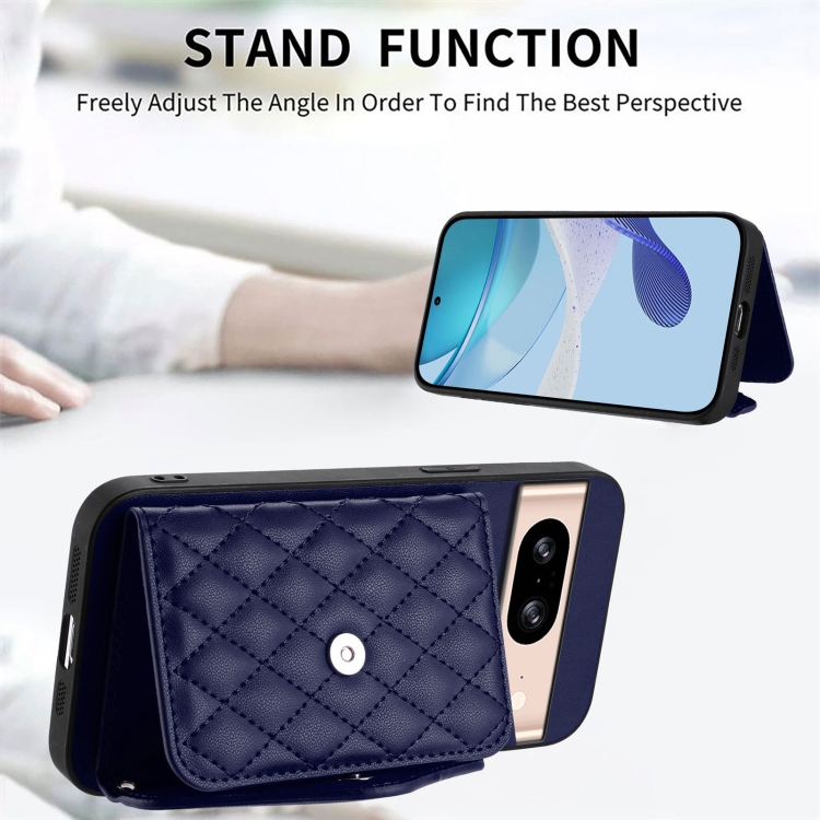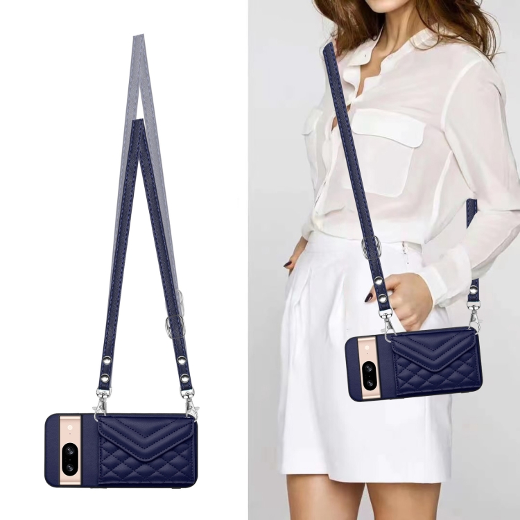 Funda para Teléfono Google Pixel 8 con Textura Rombal y Tarjetero RFID con Cordón Largo (Azul)