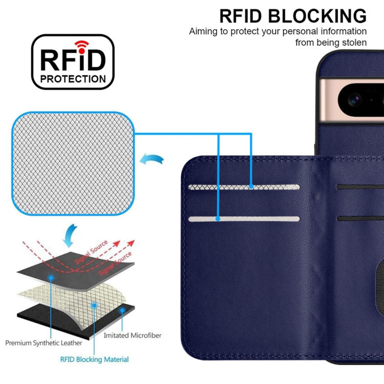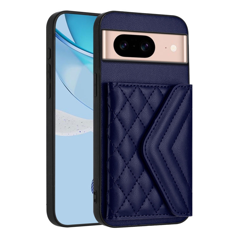 Funda para Teléfono Google Pixel 8A con Textura Rombal y Tarjetero RFID con Cordón Largo (Azul)