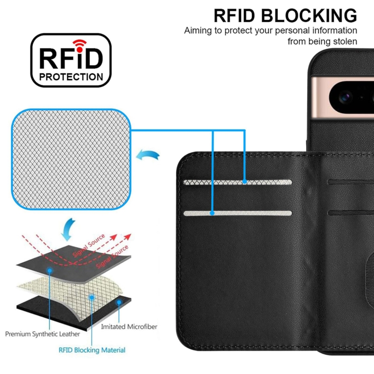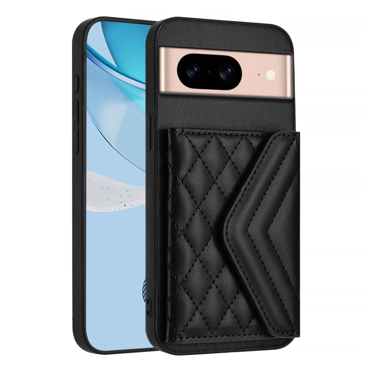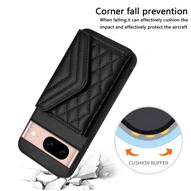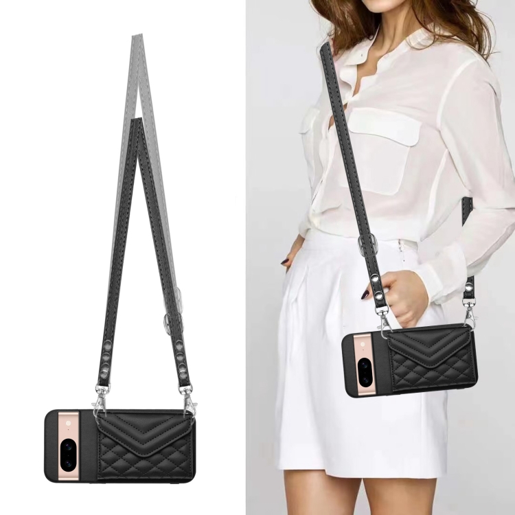 Funda para Teléfono Google Pixel 8A con Textura Rombal y Tarjetero RFID con Cordón Largo (Negro)