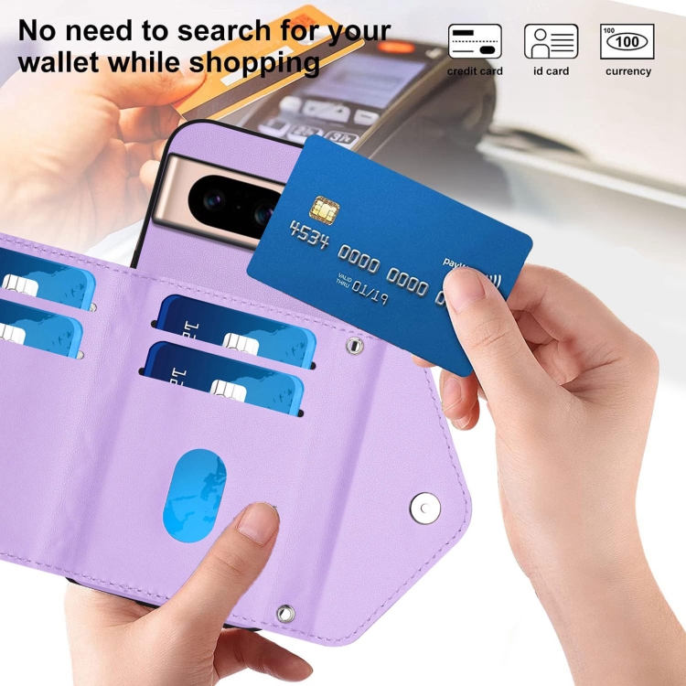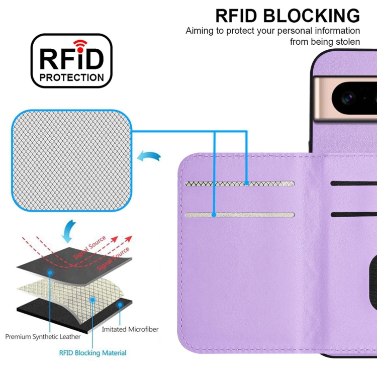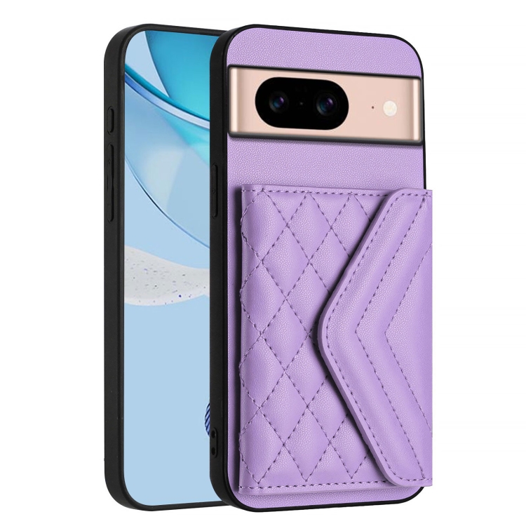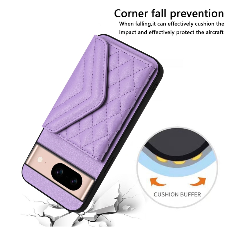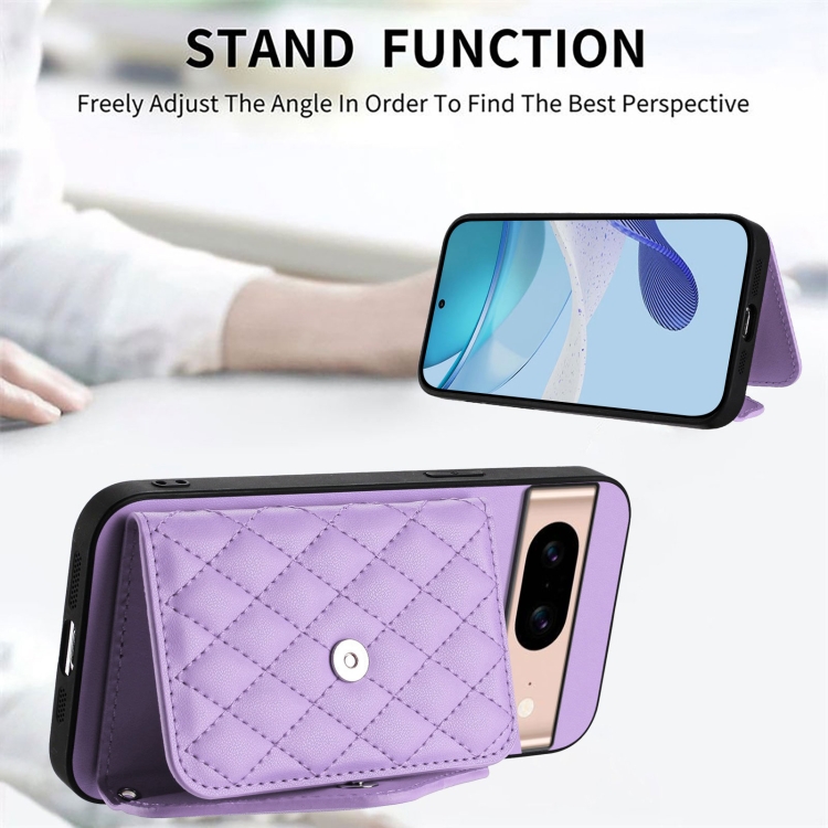 Funda para Teléfono Google Pixel 8A con Textura Rómbica y Tarjetero RFID con Cordón Largo (Morado Claro)
