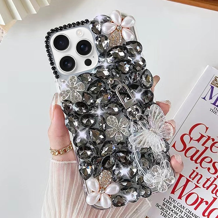 Funda para Teléfono PC iPhone 16 Pro Max Incrustaciones Diamantes Mariposas (Negro)