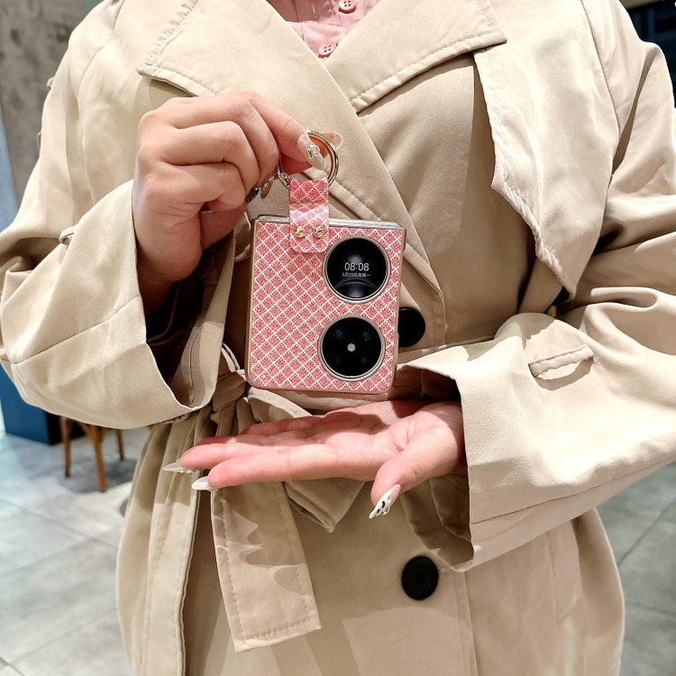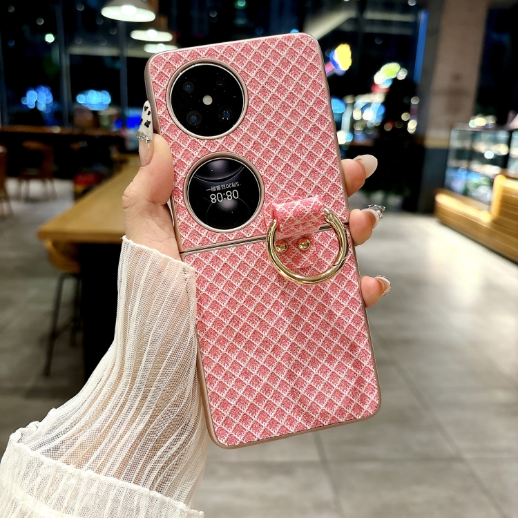 Funda para Teléfono Huawei P50 Pocket con Diseño de Rombos, Diamantes Brillantes y Anillo (Rosa)
