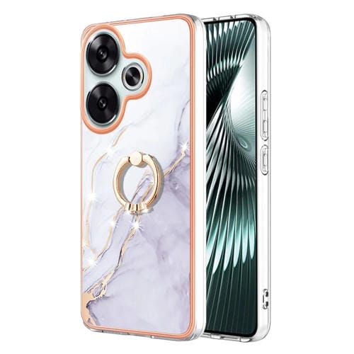 Funda para Teléfono Xiaomi Poco F6 5G con Galvanoplastia de Mármol Imd TPU y Soporte para Anillo (Blanco 006)