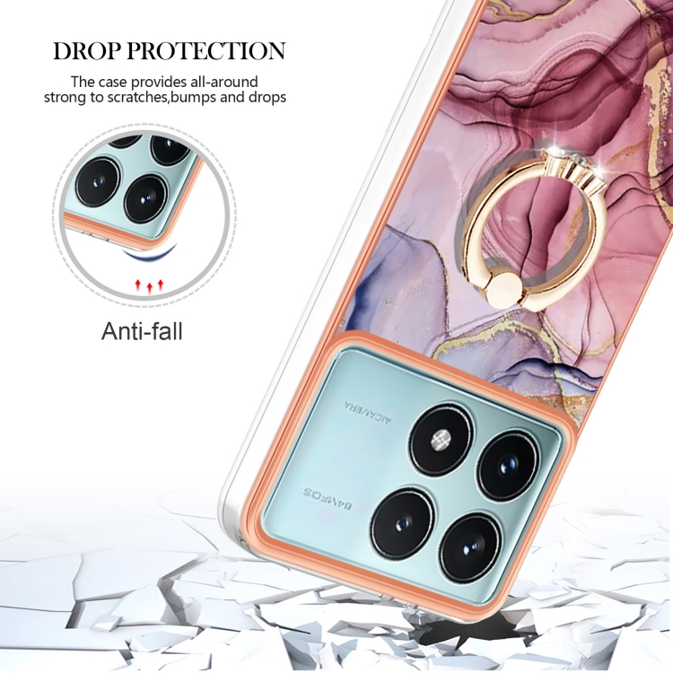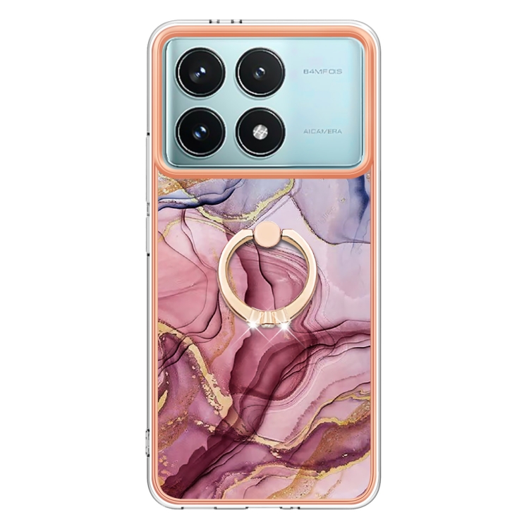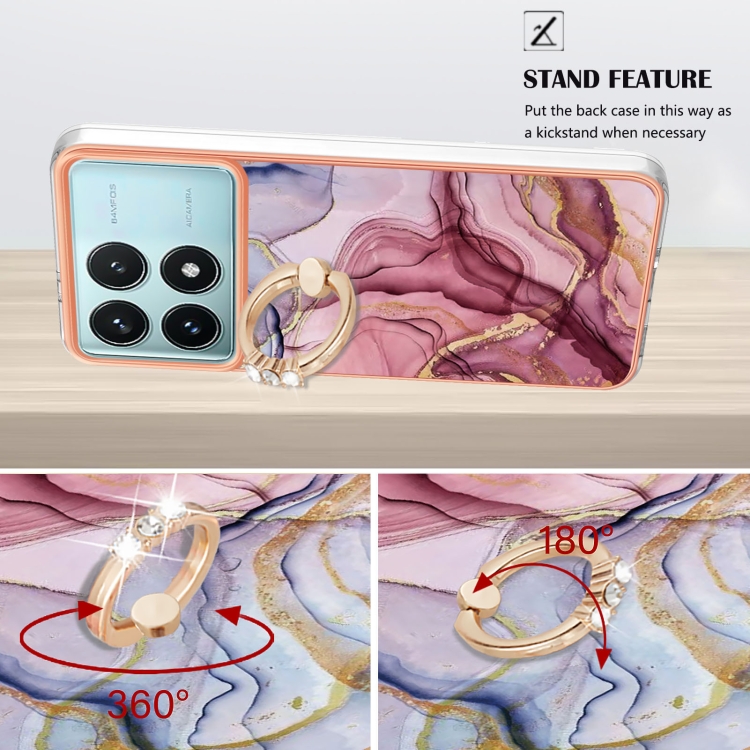 Funda para Teléfono Xiaomi Poco F6 Pro 5G con Revestimiento de Mármol Galvanizado y Doble Cara Imd con Anillo (Rosa Rojo 014)