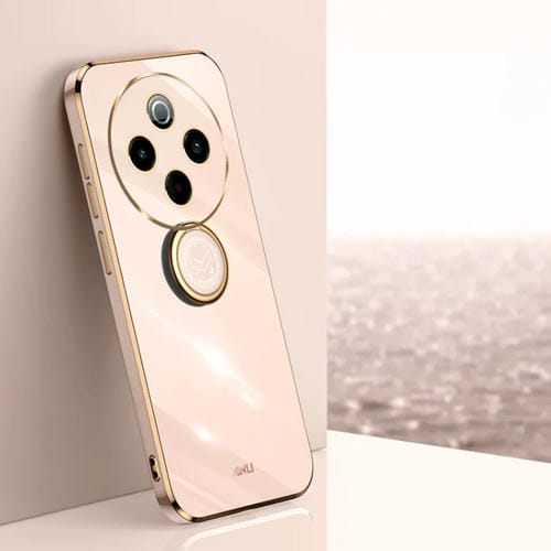 Funda para Teléfono Xinli Straight Edge 6D Electroplate TPU con Soporte para Anillo para Vivo Y300 Pro (Rosa)