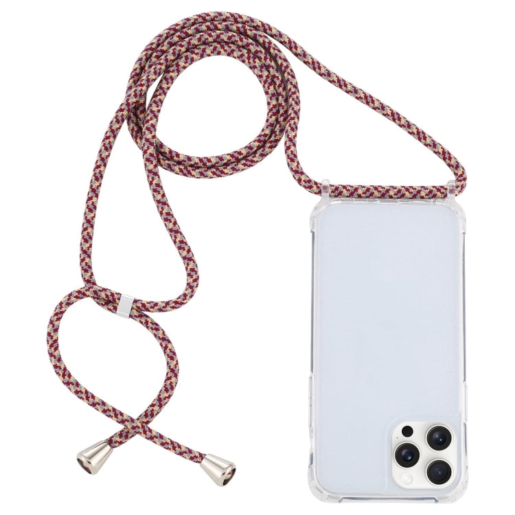 Funda Protectora para iPhone 16 Pro Acrílico Transparente a Prueba de Golpes con Cordón (Líneas Finas Rojo Albaricoque Gris)
