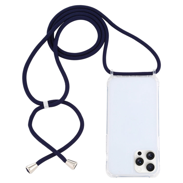 Funda Protectora para Teléfono iPhone 16 Pro Max Airbag Acrílico Transparente con Cordón (Azul Marino)