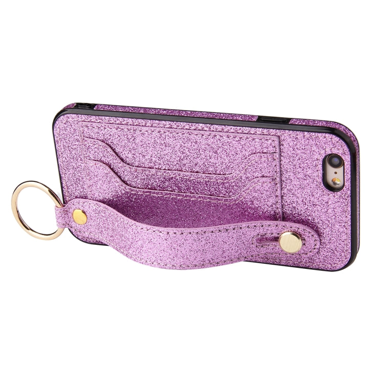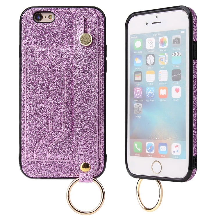 Funda Protectora para iPhone 6 / 6S Glitter Powder Pu + TPU con Soporte, Ranuras para Tarjetas y Correa para Muñeca (Púrpura)