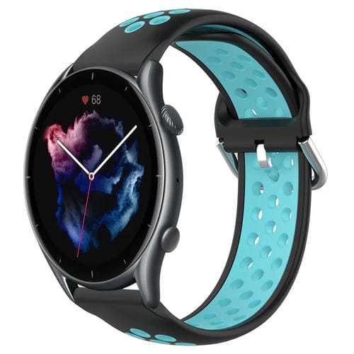 Pour Amazfit GTR 3 Bracelet de montre en silicone de sport respirant perforé de 22 mm (noir + bleu)