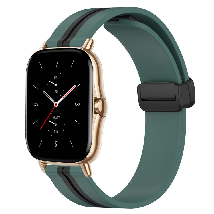 Pour bracelet de montre en silicone Amazfit GTS 2 20 mm avec fermoir magnétique pliant (vert olive + noir)