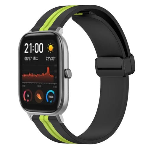 Correa de Reloj para Amazfit GTS 20mm de Silicona con Cierre Magnético Plegable (Negro + Verde Lima)