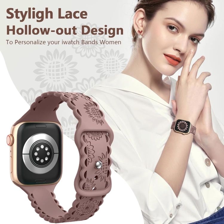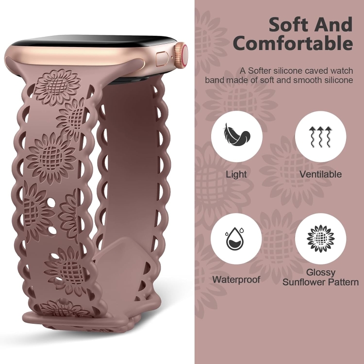 Correa de Silicona para Apple Watch Series 6 44mm con Relieve Girasol (Púrpura Ahumado)