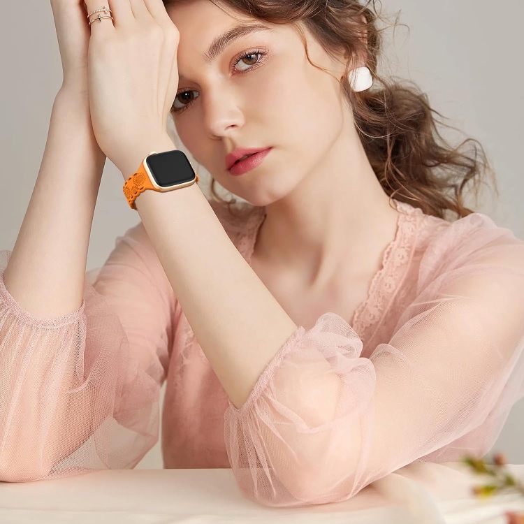 Correa de Silicona para Apple Watch Series 9 45mm con Relieve Girasol (Naranja)