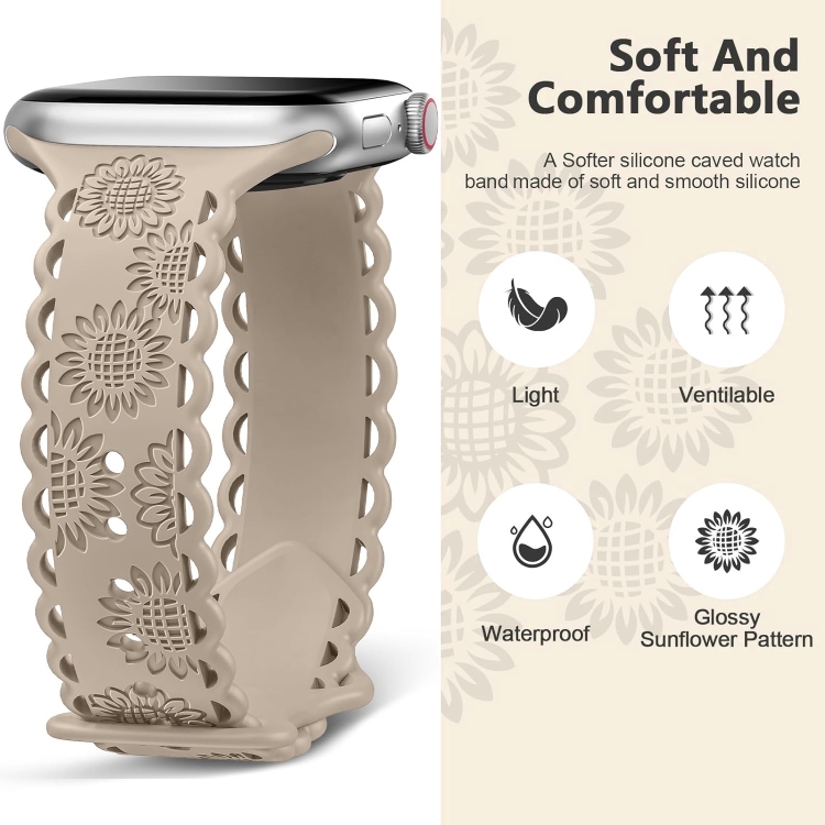 Correa de Silicona para Apple Watch Series 9 45mm con Relieve de Girasol (Té con Leche)