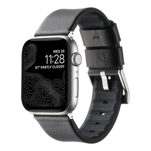 Correa de Silicona Híbrida de Cuero para Apple Watch Series 9 45mm (Café) con Hebilla Plateada
