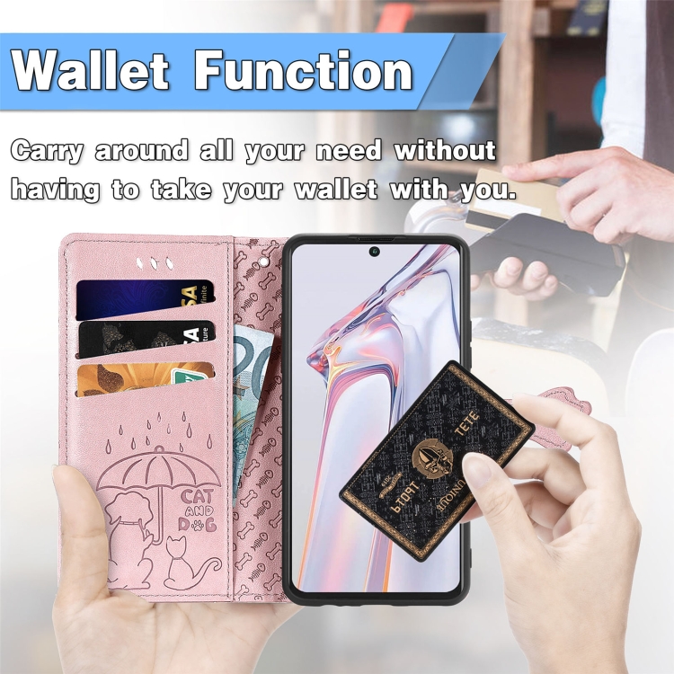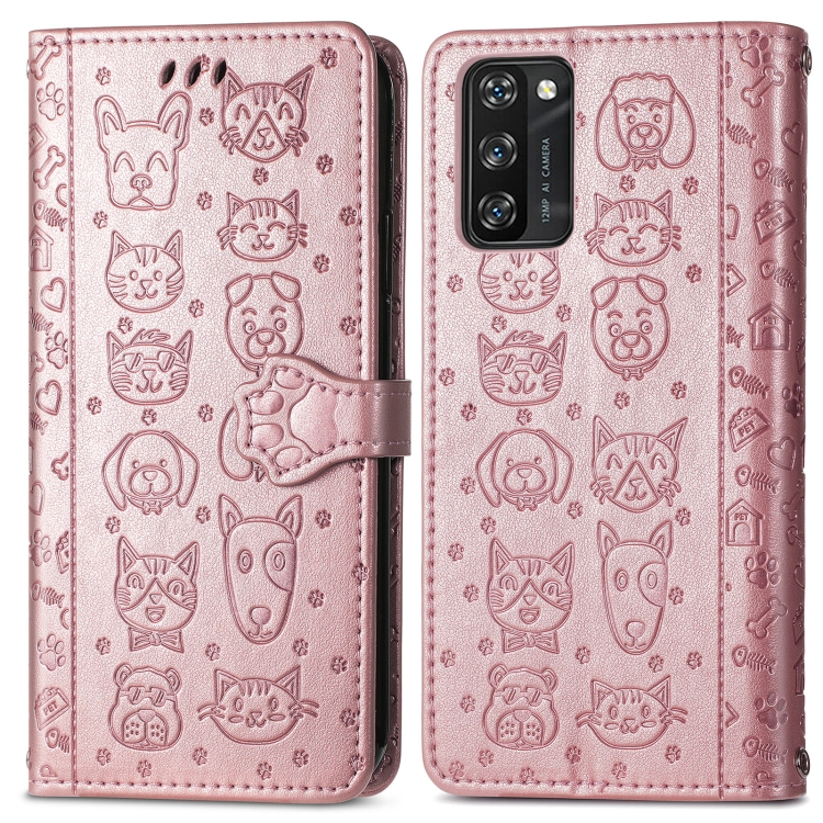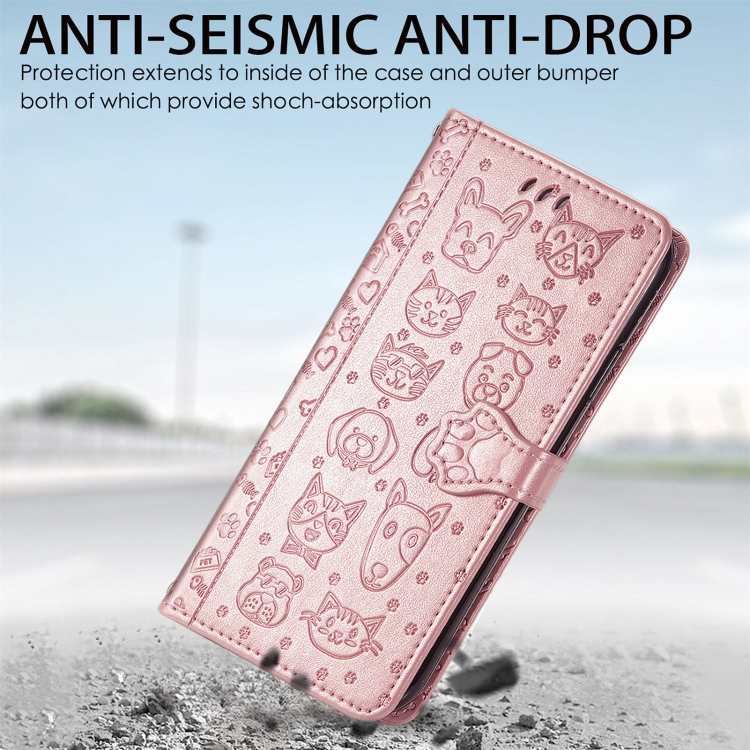 Funda Flip BlackView A100 con Estampado Gato y Perro, Soporte, Tragamonedas y Cordón (Oro Rosa)