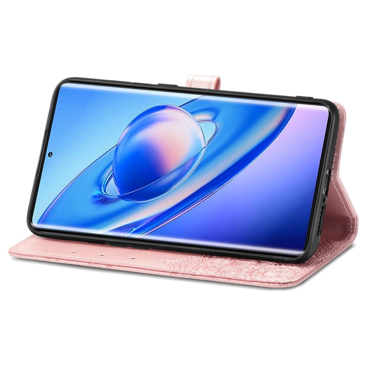 Funda de Cuero para BlackView A200 Pro con Relieve de Flores Mandala (Oro Rosa)