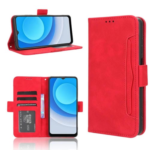 Funda de Cuero para BlackView A53 y A53 Pro con Ranuras para Tarjetas y Textura Becerro (Rojo)