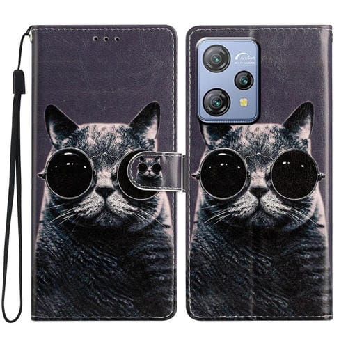 Funda de Cuero para BlackView A53 Pro con Dibujo Coloreado Gato de Gafas de Sol