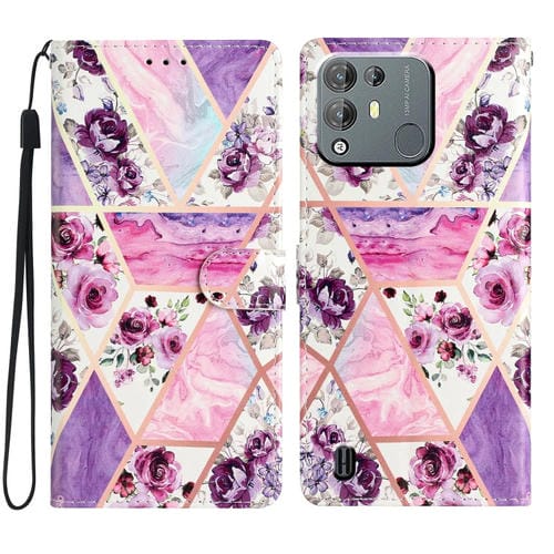 Funda de Cuero para BlackView A55 Pro con Dibujo Coloreado Mármol (Púrpura)
