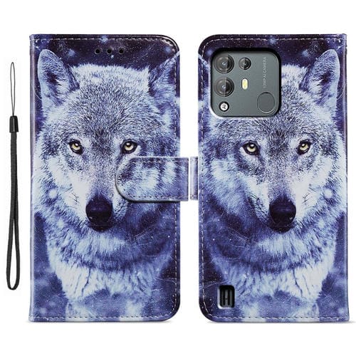 Funda de Cuero para BlackView A55 Pro con Tapa Horizontal y Patrón Lobo Blanco
