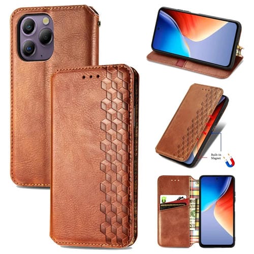 Funda de Cuero Magnético Prensado para BlackView A96 Cubic Grid (Marrón)