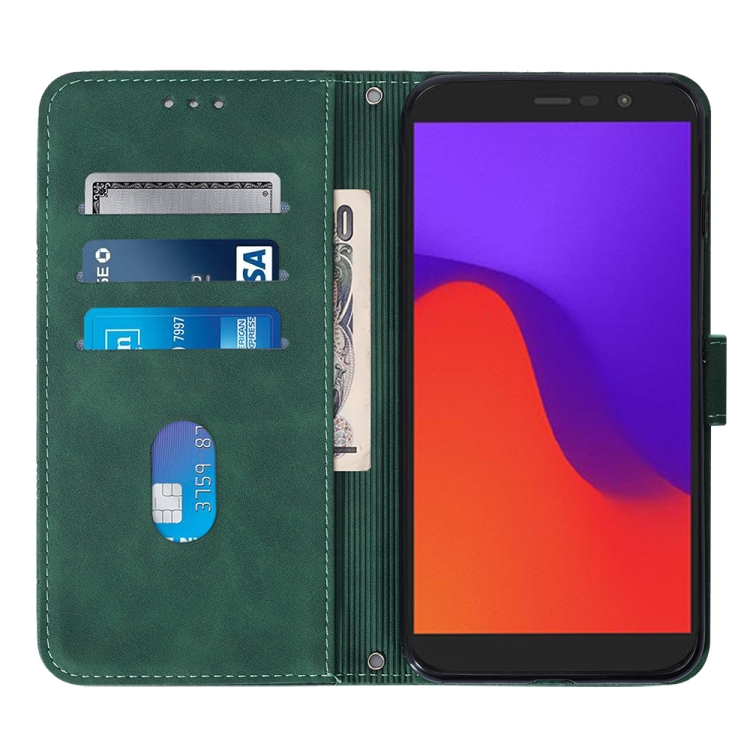 Funda de Cuero con Tapa para Blu View 2 2020/2022 Crossbody 3D en Relieve (Verde Oscuro)