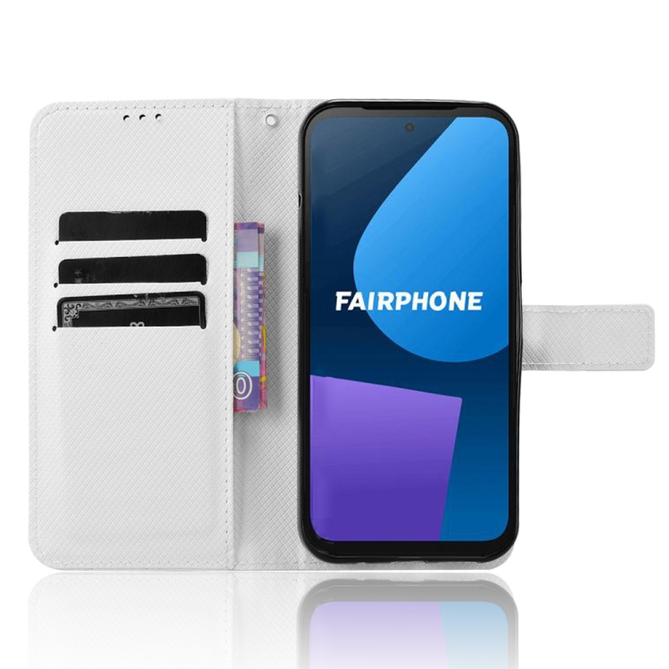 Funda de Cuero para Fairphone 5 con Textura de Diamante (Blanco)