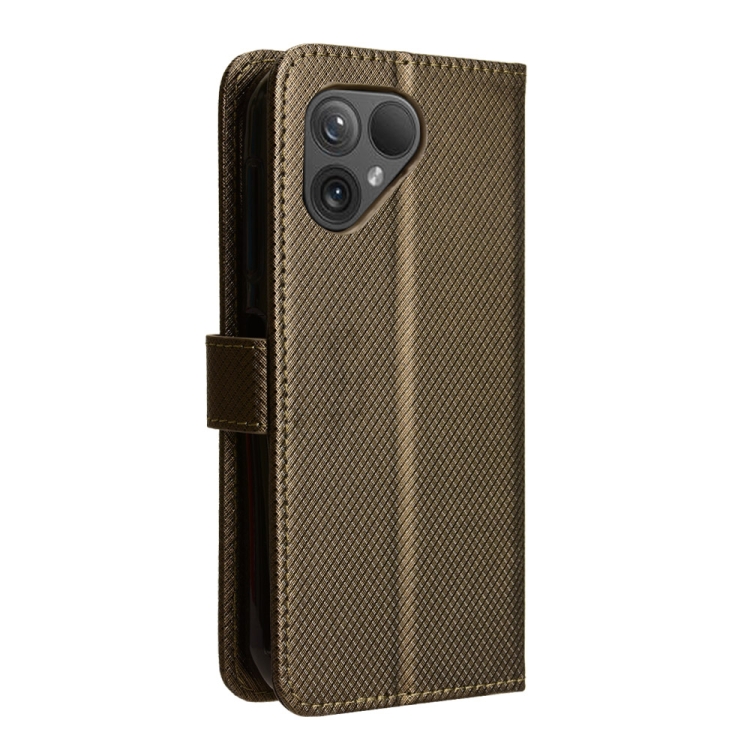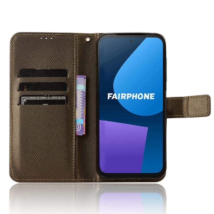 Funda de Cuero para Fairphone 5 con Textura de Diamante (Marrón)