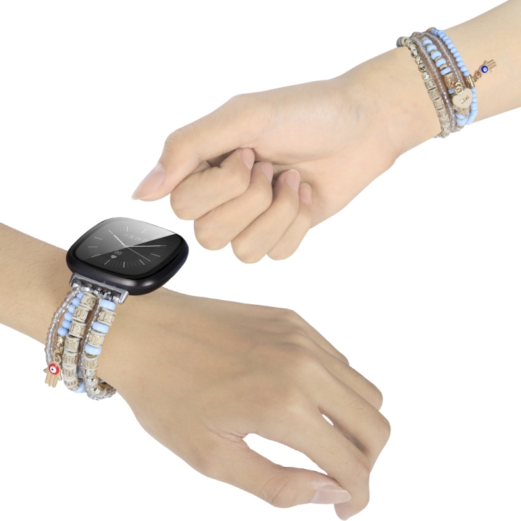 Correa para Fitbit Versa 3 y Sense Palm Bead Chain (Azul)