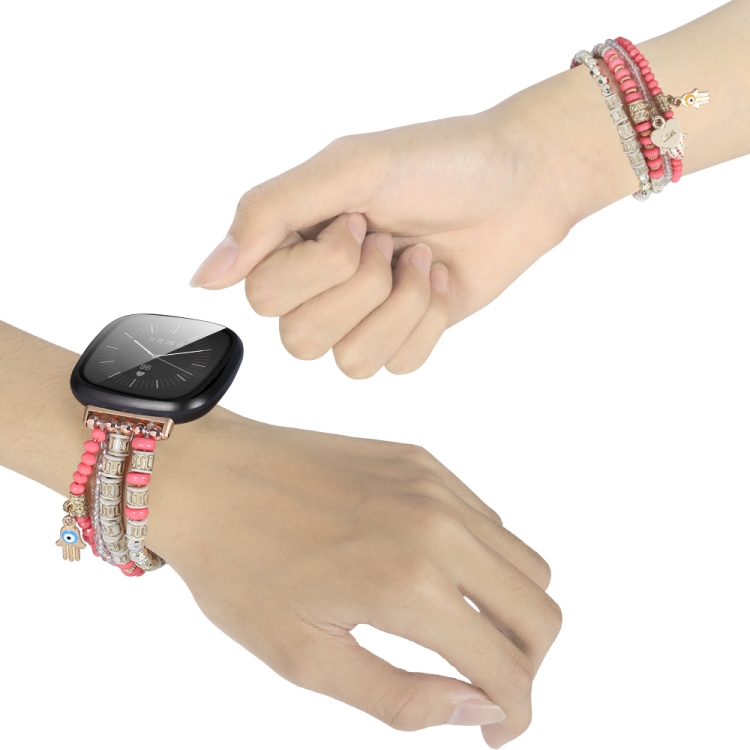 Pulsera para Fitbit Versa 3 y Sense Palm Bead Chain (Rose Red)