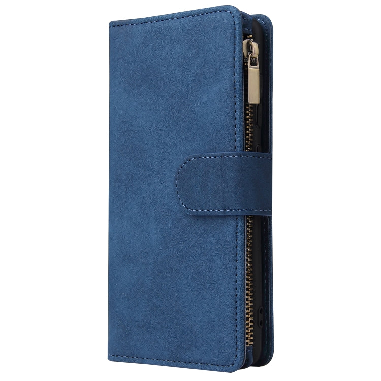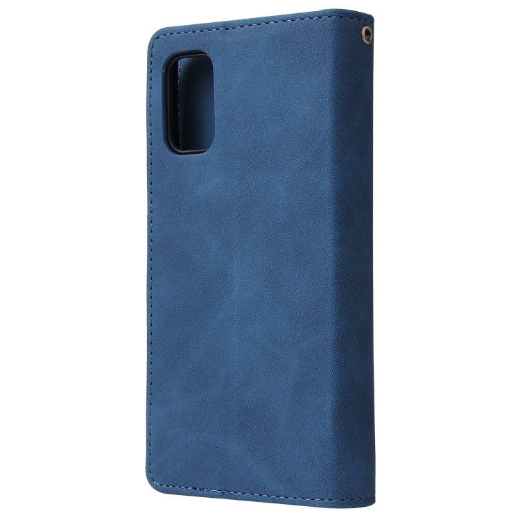 Estuche de Cuero para Galaxy A41 con Tapa Horizontal Multifuncional, Ranura para Tarjeta, Soporte, Billetera con Cremallera y Marco de Fotos (Azul)