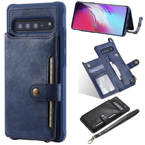 Estuche Protector Galaxy S10 5G Cremallera Hebilla Soporte Ranuras Tarjetas Billetera Cordón Marco Fotos (Azul)